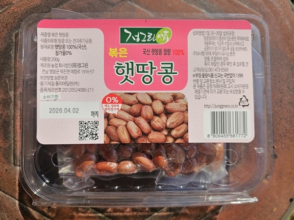 정 그 린의 볶은 햇 땅 콩 은요?1.정그린의 볶은 햇땅콩은 국산 땅콩 100% 입니다.